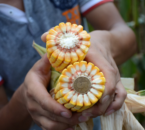 特征特性:平均生育期106天左右。株高 275厘米,穂位 100厘米。穗長 18.5 厘米,穗行數(shù) 16-18 行。穗軸紅色,籽粒黃色,馬齒型,百粒重 35.4克。